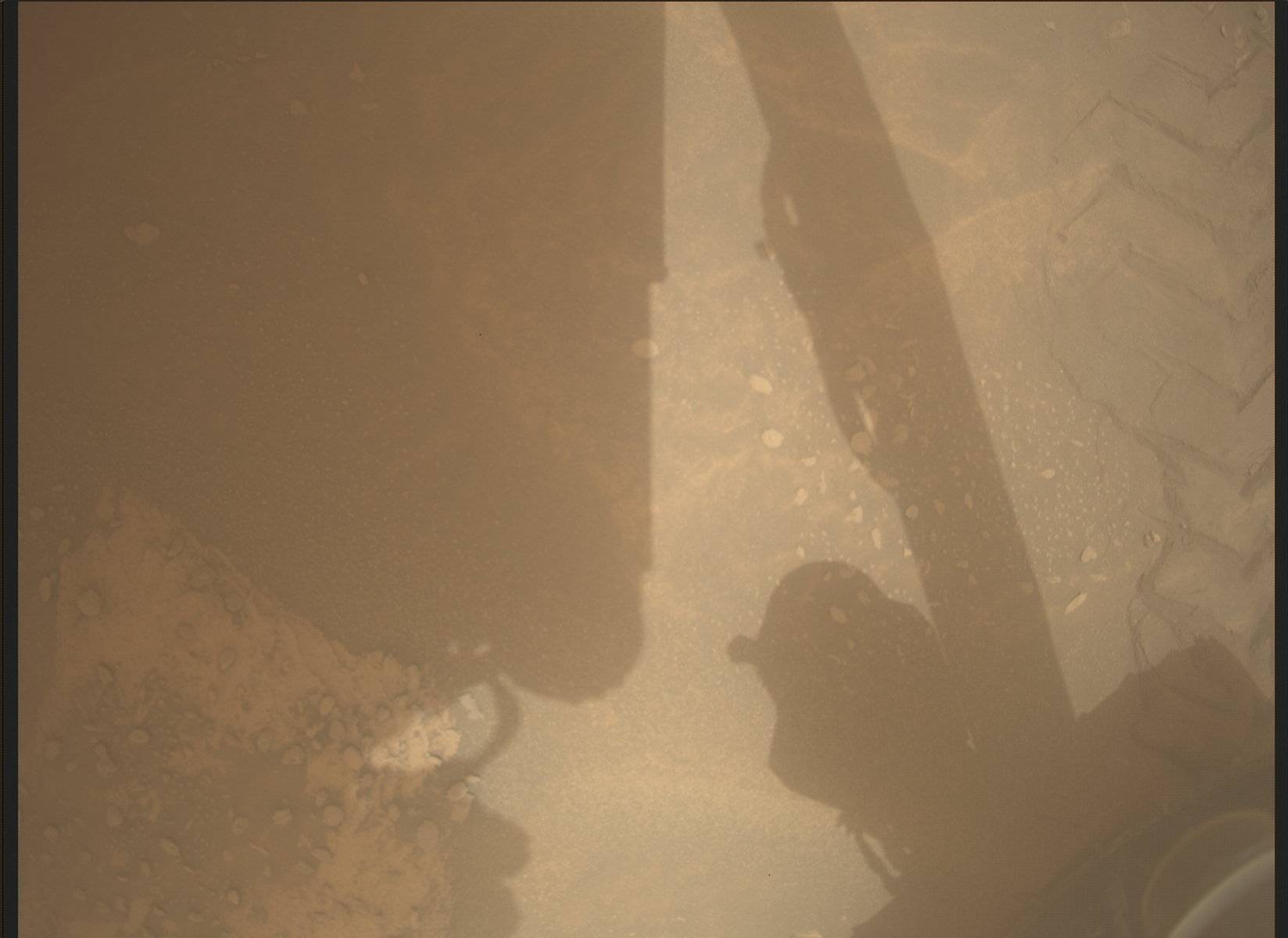 This image was taken by Mars Descent Imager (MARDI) onboard NASA's Mars rover Curiosity on Sol 0 (2012-08-06 05:15:39 UTC).
