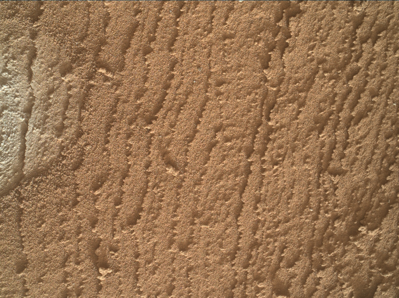 Most images acquired by MAHLI in daylight use the sun as an illumination source. However, in some cases, MAHLI's two groups of white light LEDs and one group of longwave ultraviolet (UV) LEDs might be used to illuminate targets. When Curiosity acquired this image, the group 1 white light LEDs were off, the group 2 white light LEDs were off, and the ultraviolet (UV) LEDS were off.