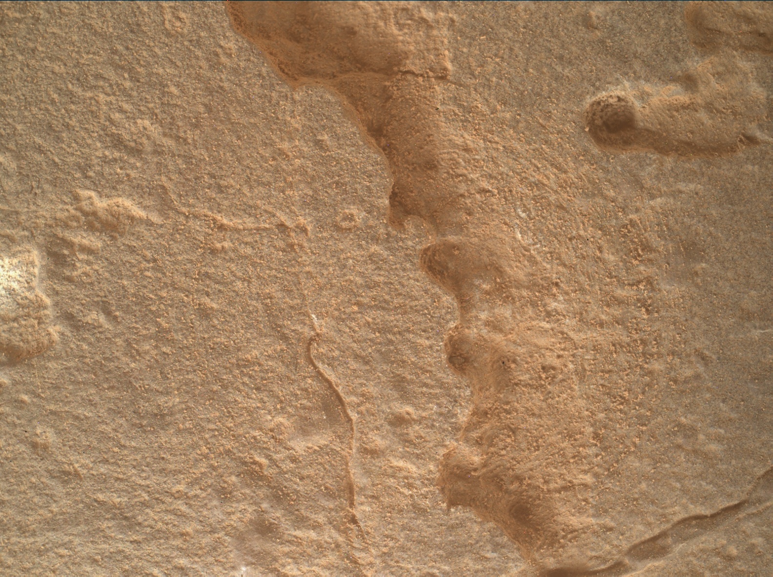 Most images acquired by MAHLI in daylight use the sun as an illumination source. However, in some cases, MAHLI's two groups of white light LEDs and one group of longwave ultraviolet (UV) LEDs might be used to illuminate targets. When Curiosity acquired this image, the group 1 white light LEDs were off, the group 2 white light LEDs were off, and the ultraviolet (UV) LEDS were off.