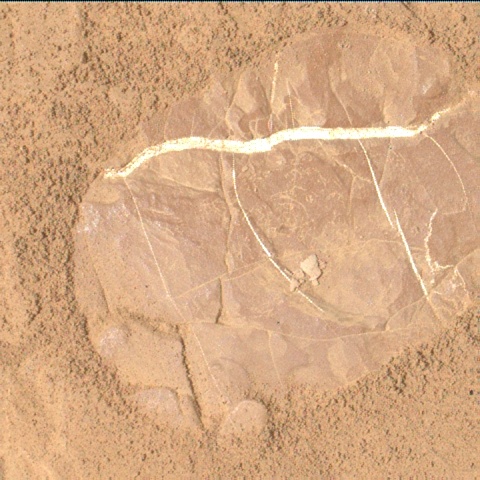Most images acquired by MAHLI in daylight use the sun as an illumination source. However, in some cases, MAHLI's two groups of white light LEDs and one group of longwave ultraviolet (UV) LEDs might be used to illuminate targets. When Curiosity acquired this image, the group 1 white light LEDs were off, the group 2 white light LEDs were off, and the ultraviolet (UV) LEDS were off.