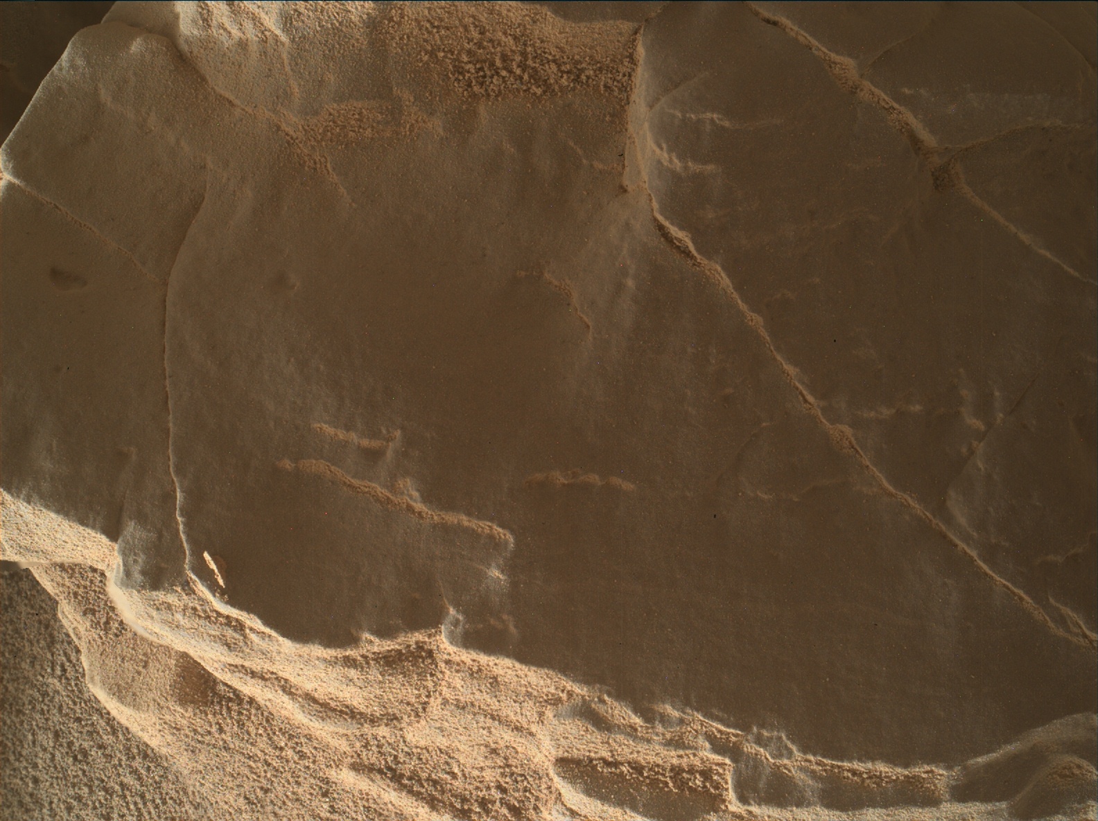 Using an onboard focusing process, the Mars Hand Lens Imager (MAHLI) aboard NASA's Mars rover Curiosity created this product by merging two to eight images previously taken by the MAHLI, located on the turret at the end of the rover's robotic arm.